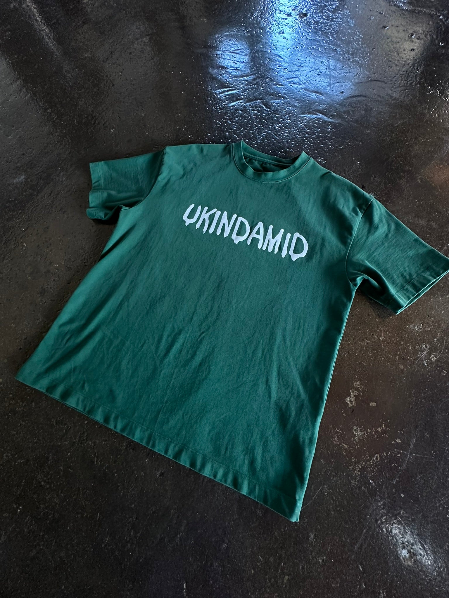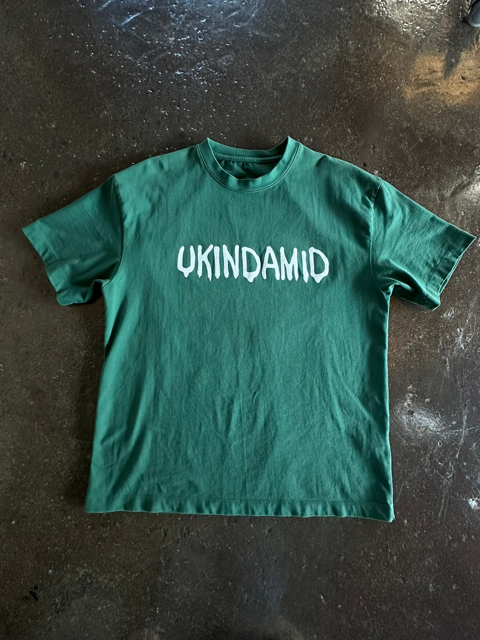 - Front: Minimal “UKINDAMID” wordmark, screen-printed by hand.